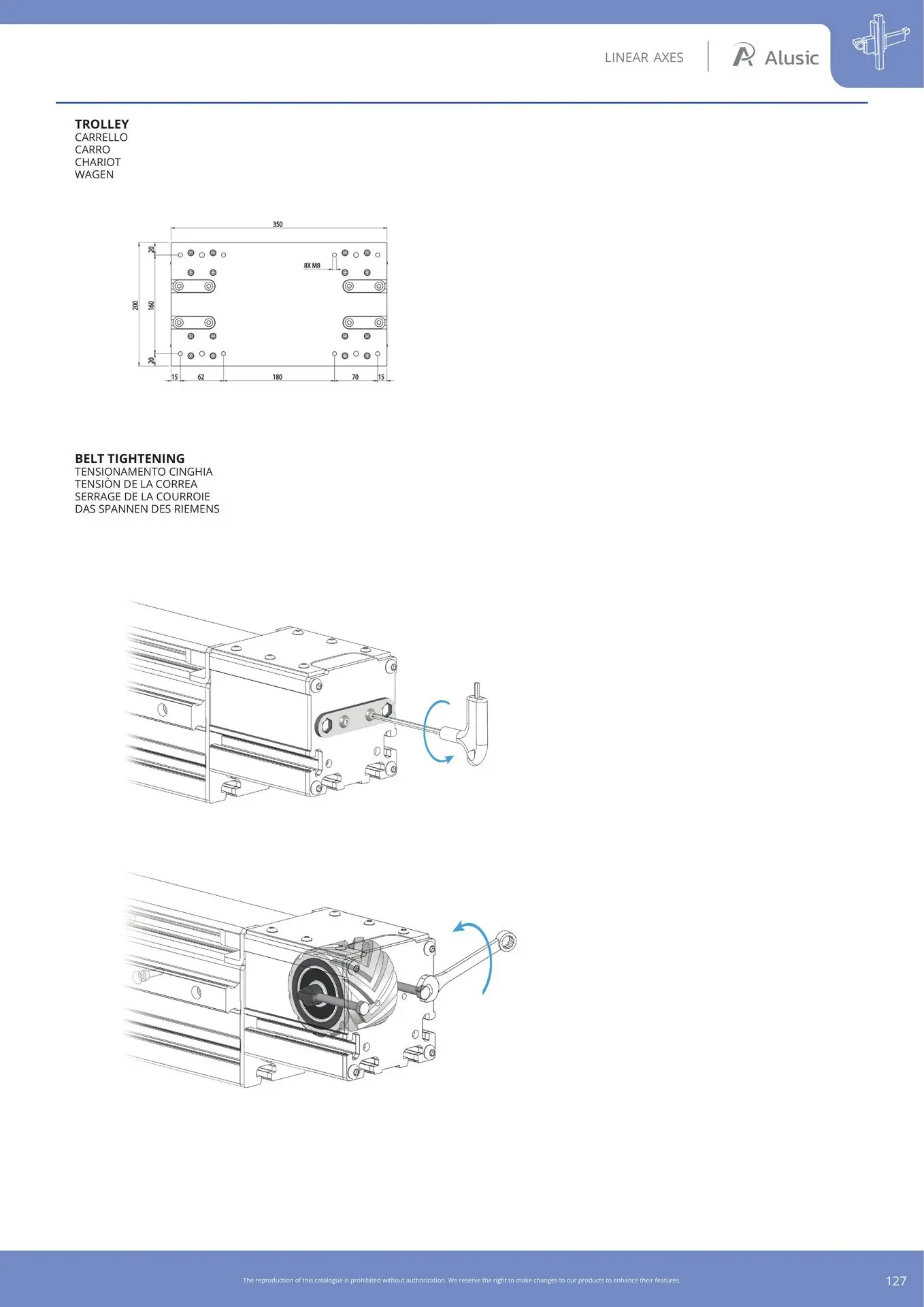 Alusic self-aligning linear actuators 812.HHL/813.HHL, ball bearing guides size 20, 90x90 profile